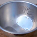ボウルとザルを出したり片付けたりする必要がないので、思った以上に我が家のキッチンで大活躍しています! サイズはφ235x深さ125mmとやや大きめですが、大は小を兼ねるはず。いまの季節は米研ぎだけでなく、鍋の〆に麺を茹でて水切りするのにも役立っています。