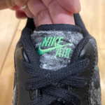 シュータンにも100%リサイクルフェルトを採用。ナイキのブランドロゴ刺しゅうはポップで艶やかなパステルグリーンでアクセントに。