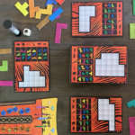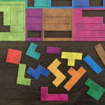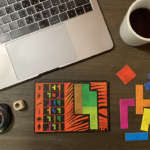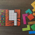 ピースタイルは、正方形や鍵形、直線、T字形、L字形など、12枚で1セット。回転させたり、裏返ししたりしてパズルボードの白いマス目を埋めます。