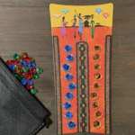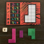 1人用では使いませんが、ただの脳トレゲームではなくワイワイ楽しめるボードゲームになっているのが、このラウンドトラックボード(細長いボード)と宝石コマがあるため。宝石は色によって点数が決められていて、ルビー(赤)が4点、サファイア(青色)が3点、エメラルド(緑)が2点、琥珀(茶色)は1点。9ラウンド勝負で点数が高い人の勝ちです。