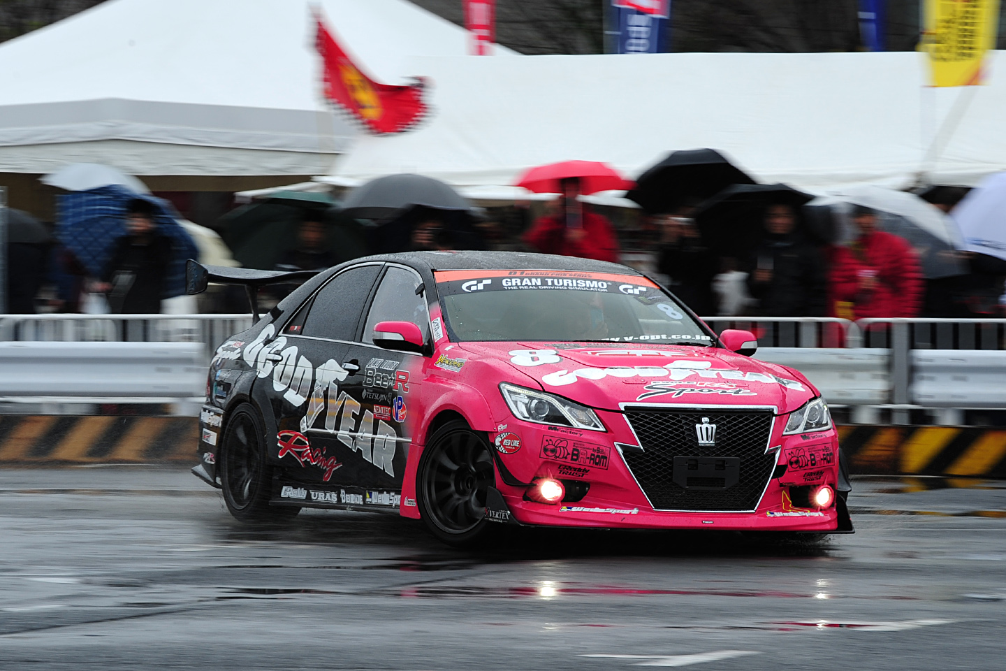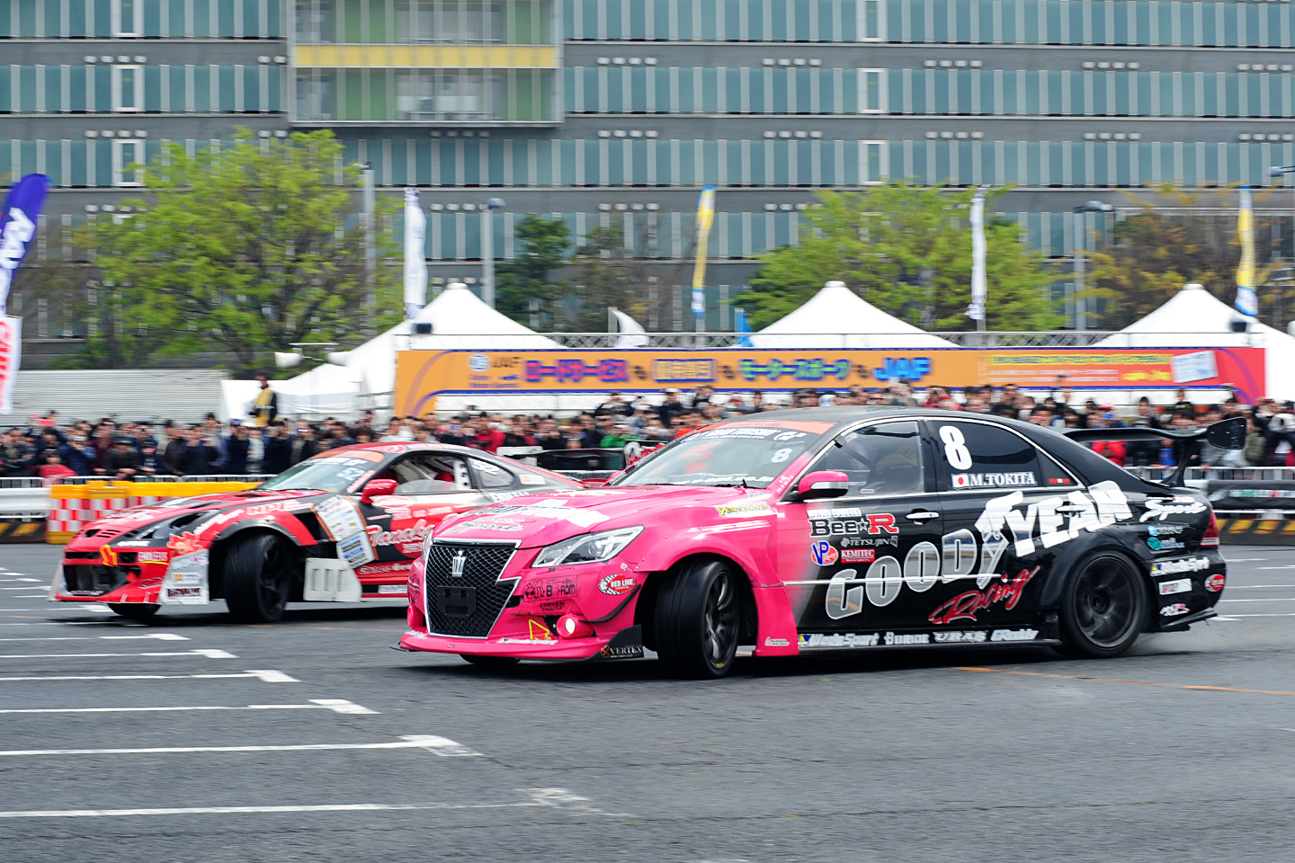 時田雅義選手がドライブするのは、最高出力700馬力の「GOODYEAR Racing ZEROCROWN」。あのクラウンが見せる豪快なスライドに、会場も大盛り上がり。
