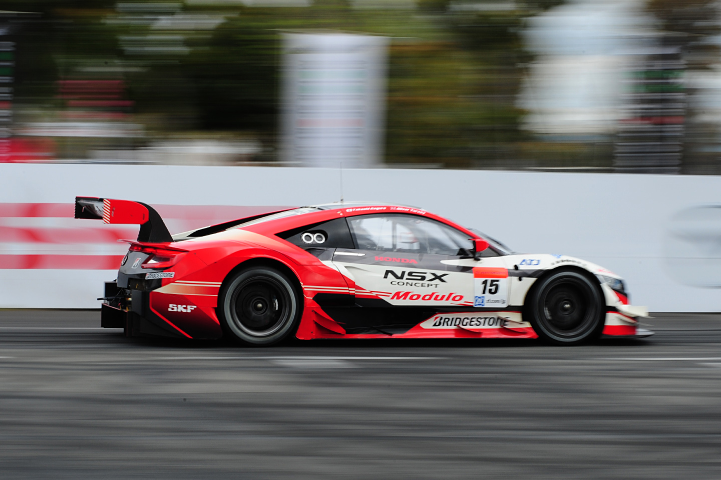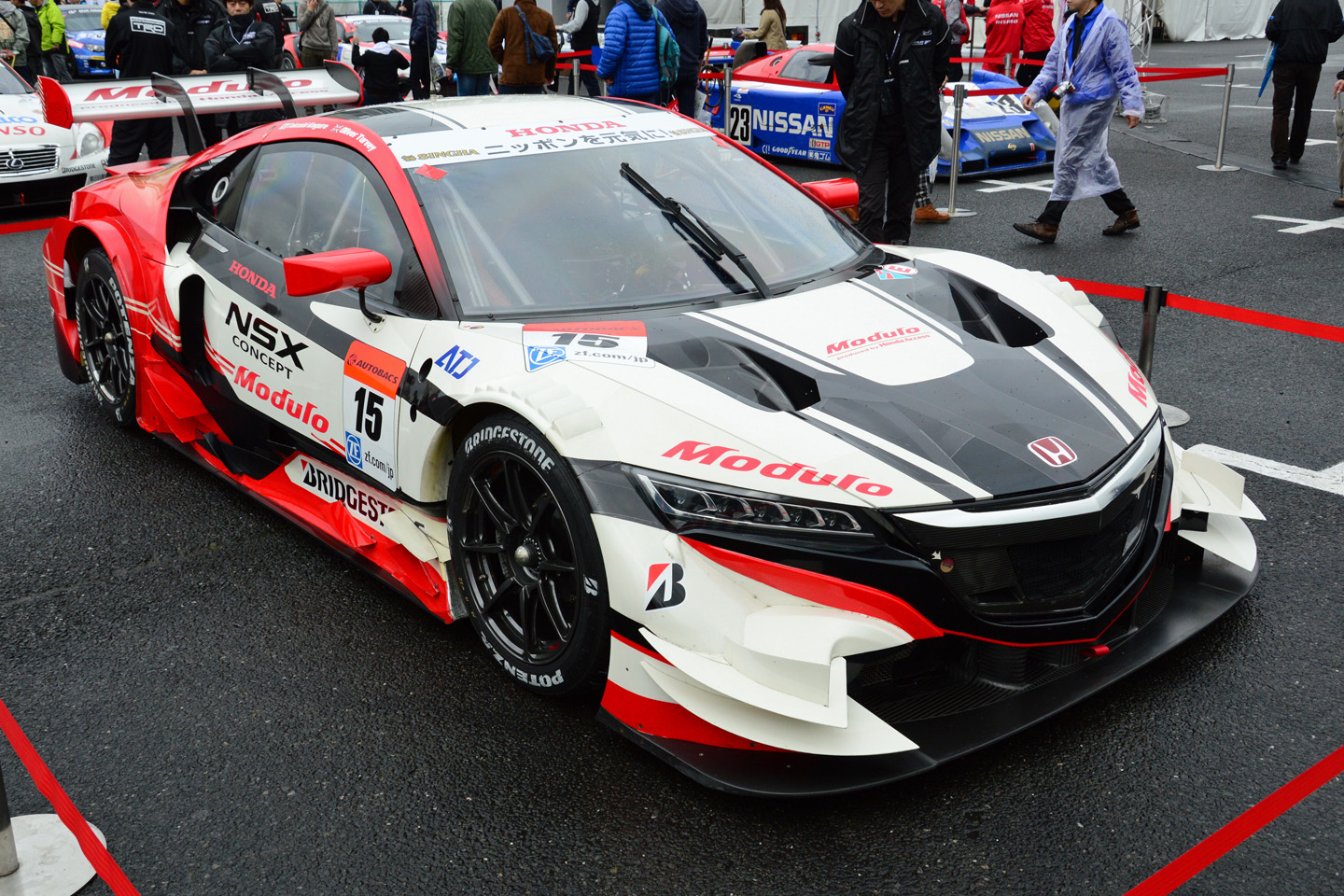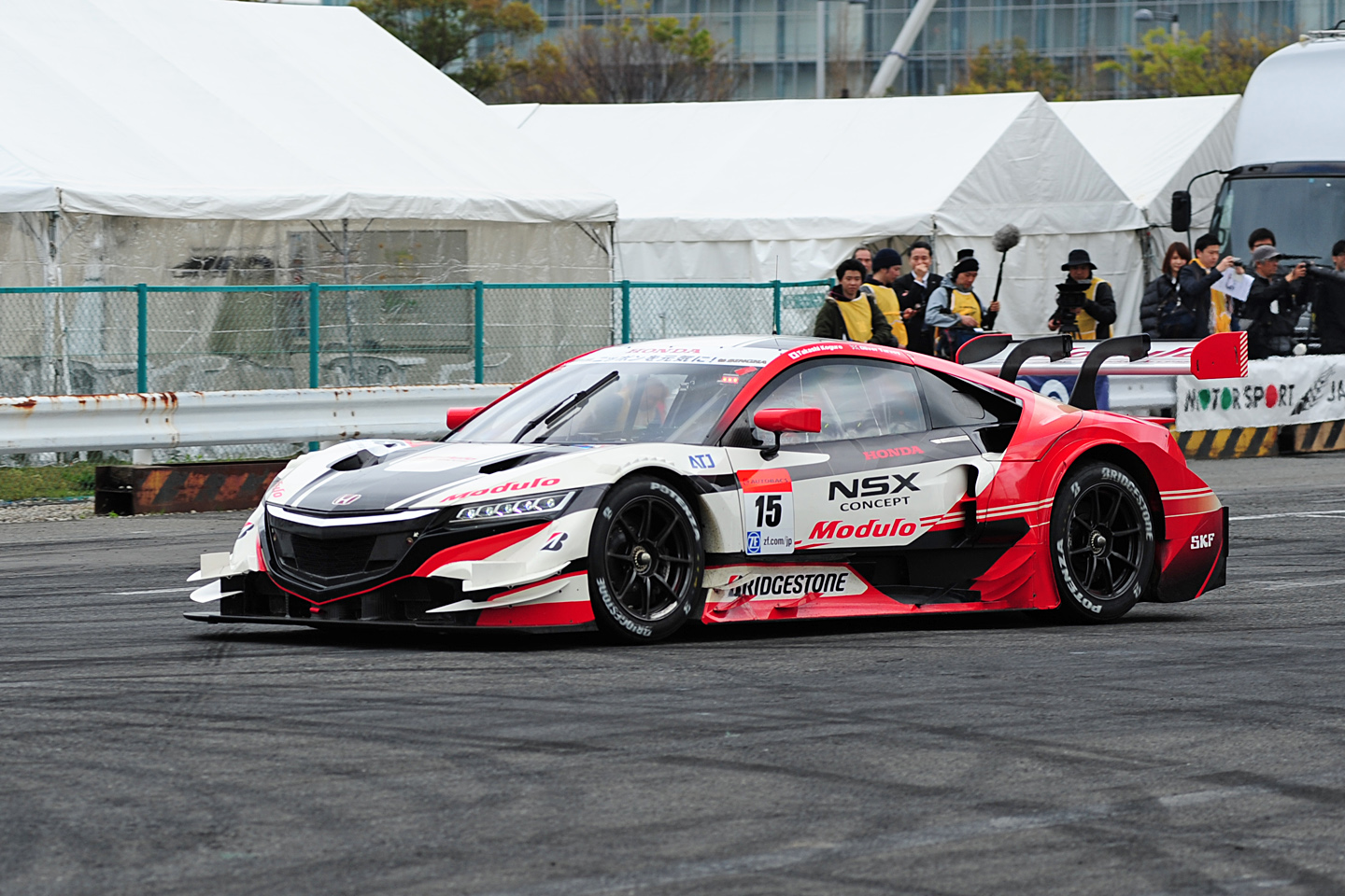 今シーズンのSUPER GT選手権を戦う「ドラゴ モデューロ NSX CONCEPT-GT」。スムーズかつ強烈な加速は、最新のGT500マシンならではです。