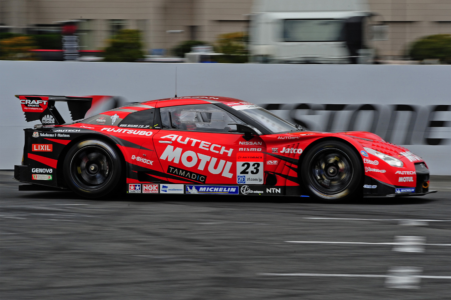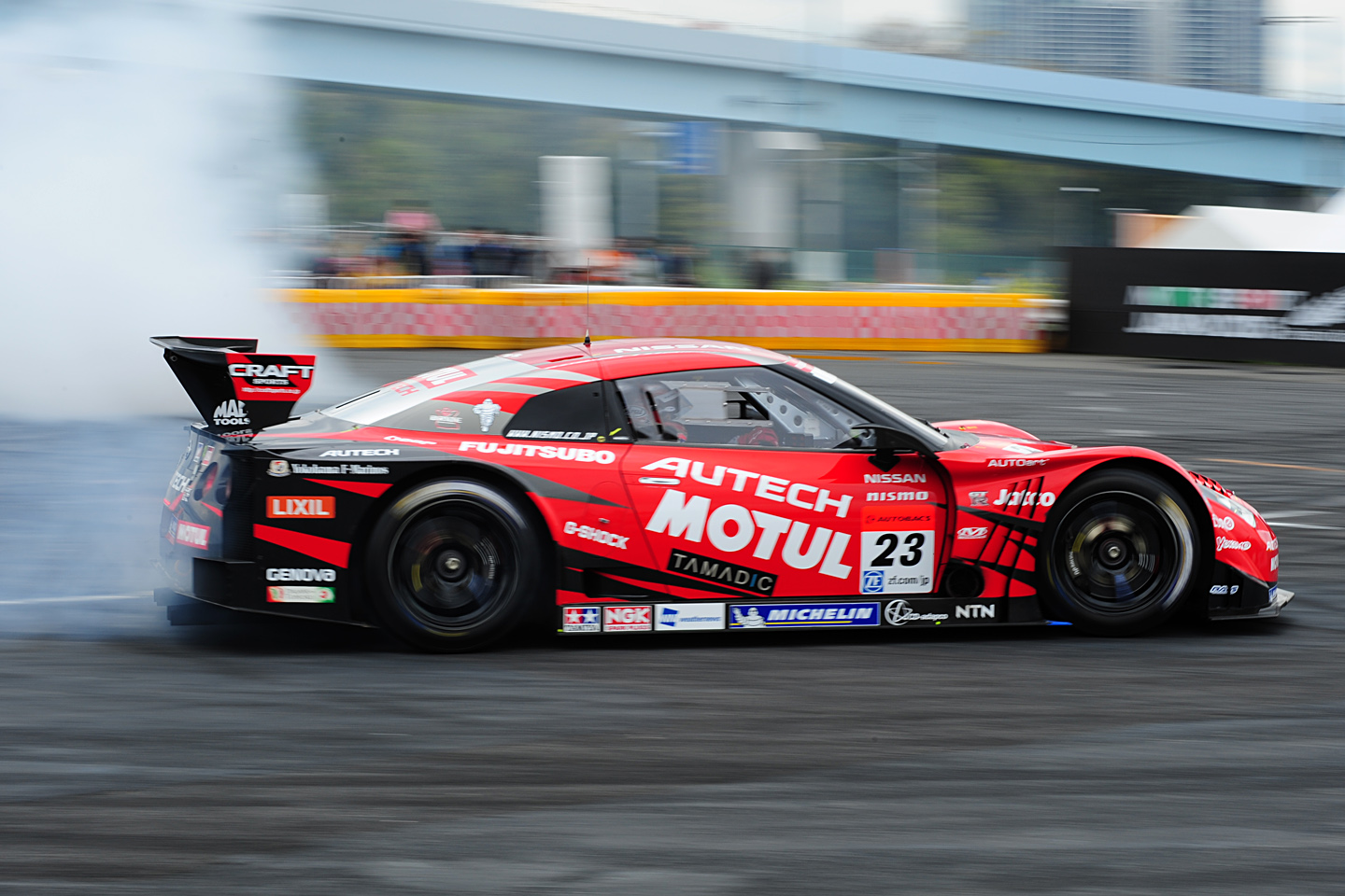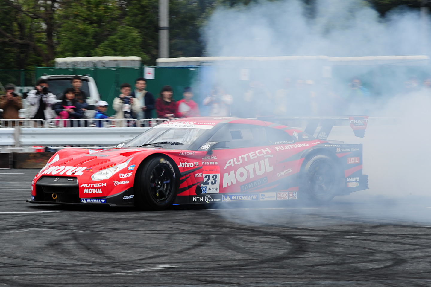 2013年のSUPER GT、GT500クラスを戦った「MOTUL AUTECH GT-R」。V8エンジンの強烈なパワーで、過激なデモンストレーションを披露しました。