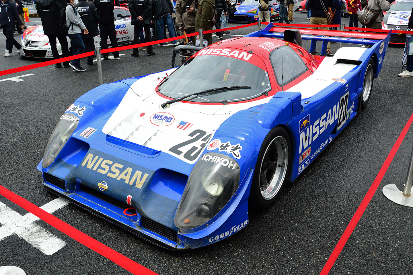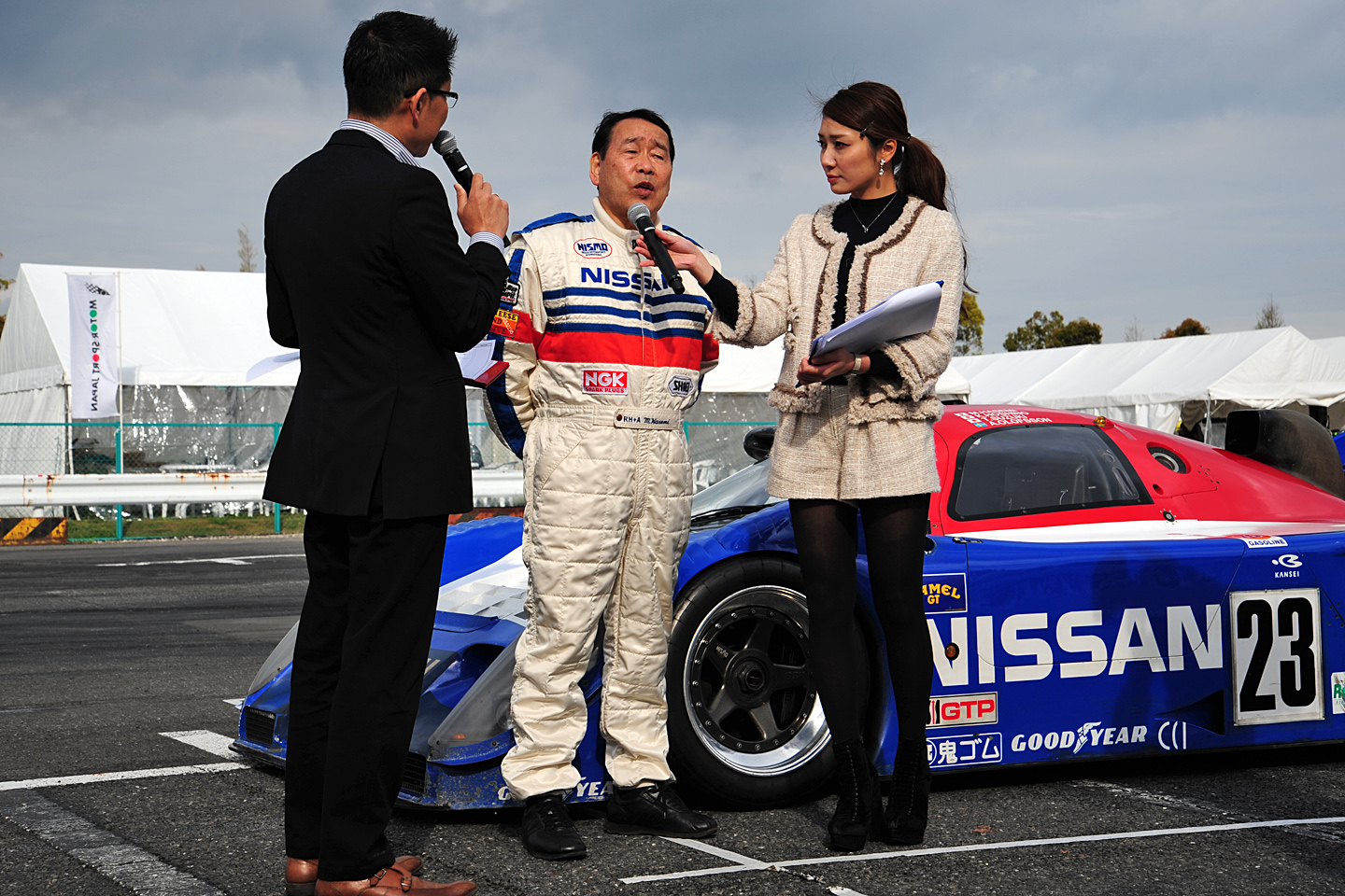 デモランや展示で注目を集めたグループCカー「日産R91CP」は、デイトナ24時間耐久レースを制したマシン。初日は長谷見昌弘氏がエンジンを始動。2日目は星野一義氏がデモンストレーションを行った。