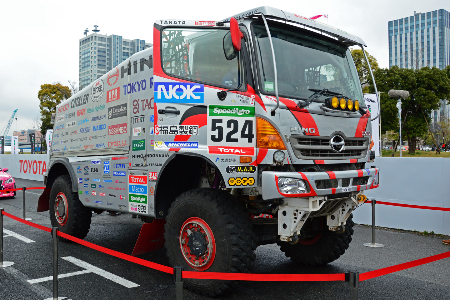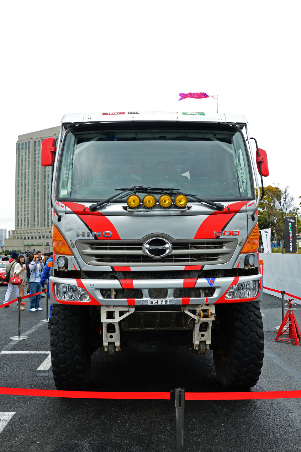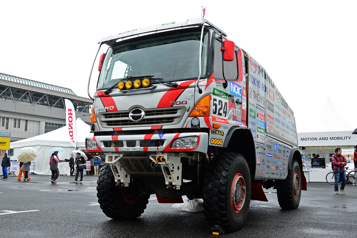 同乗走行やコクピット体験も行った日野レンジャーのダカールラリー参戦車両は、カミオンクラスで24回連続完走、排気量10リッター未満クラスで6連覇を達成した名車。全長6.3m、全高3.15mの巨体が加速する姿はまさに圧巻でした。