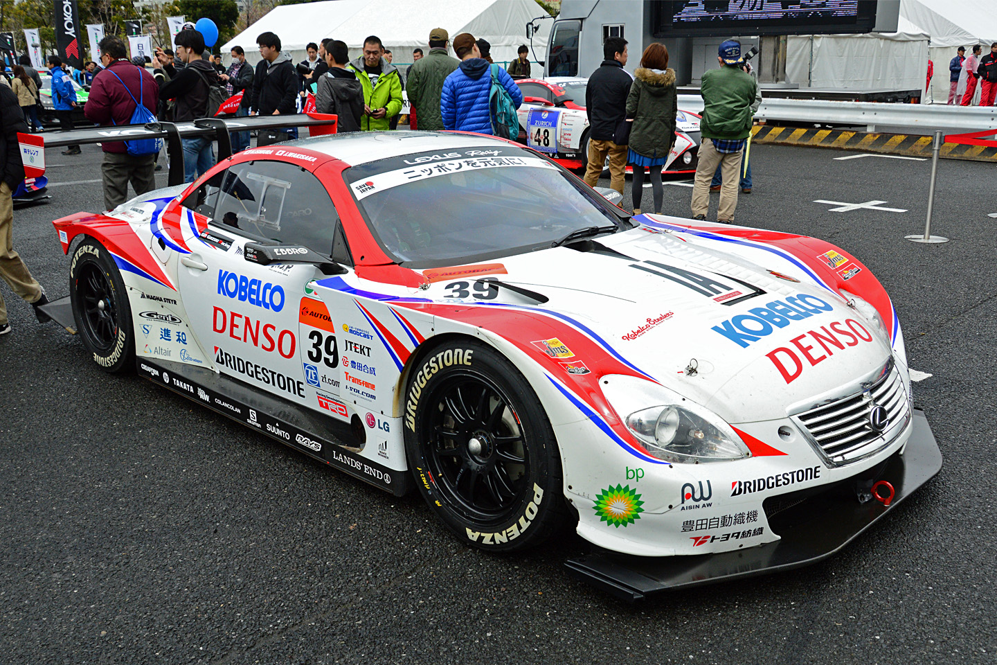 上記のMOTUL AUTECH GT-R同様、’13年のSUPER GTに参戦した「DENSO KOBELCO SC430」も姿を現しました。GT500マシンらしい迫力ある佇まいです。
