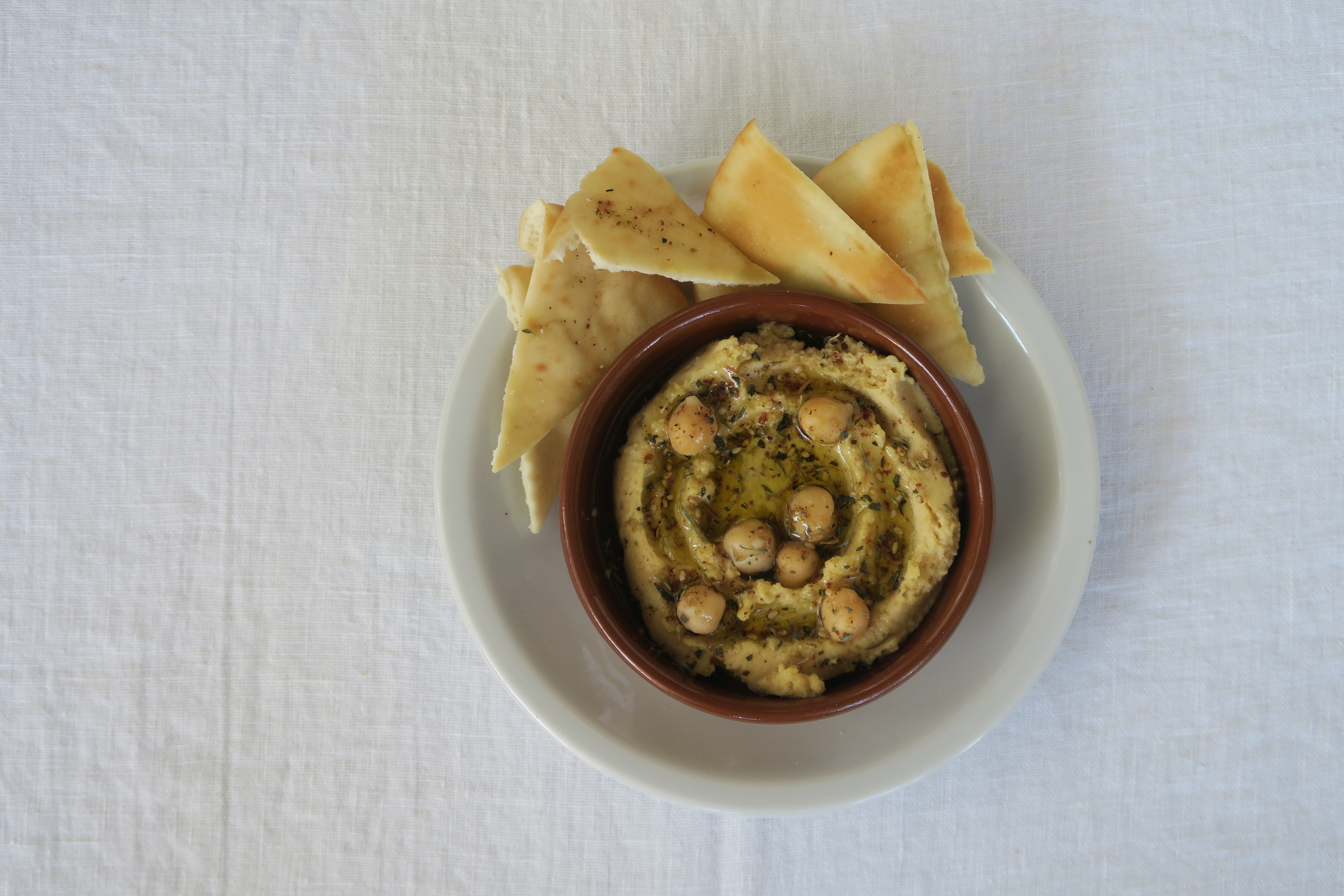 ビールにぴったりなつまみメニューも豊富。ヒヨコ豆のフムス(ピタチップス付き)700円