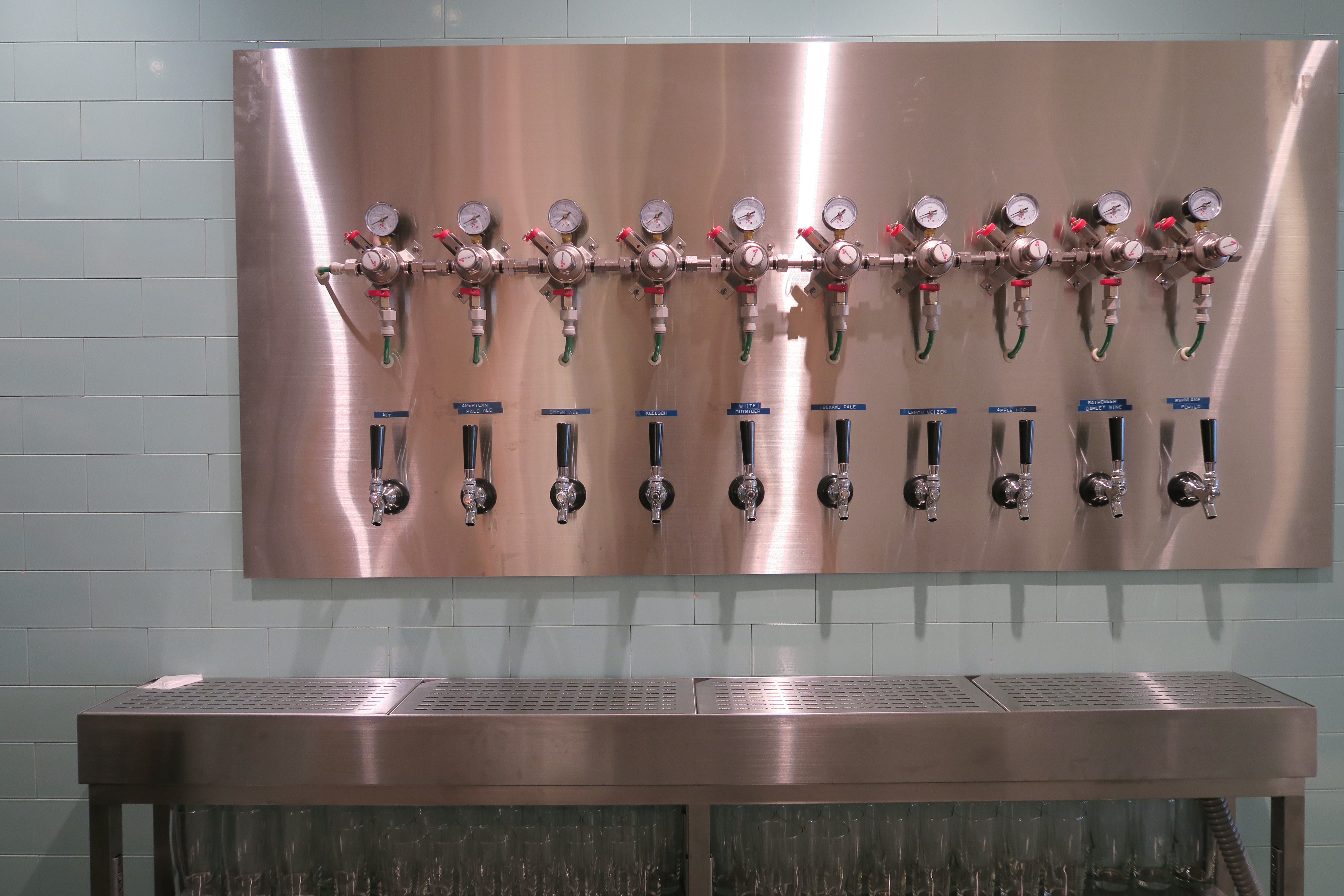 鎌倉店でも提供する鎌倉ビールとのコラボによるオリジナルビールに加え、国内外のクラフトビール計10種をタップサービスで楽しむことができるという