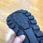アウトソールには溝が深くて凹凸のメリハリを効かせたトレッドパターンを採用し、悪路でも優れたグリップ力を発揮します。