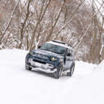 そんなディフェンダーの5ドア・ロングホイールベースモデルに、2リッターの4気筒ガソリンターボエンジンを搭載した「ディフェンダー110 P300」で雪道を目指す。装着タイヤは、フィンランドに本拠を置くノキアンタイヤ社のスタッドレスだ。