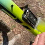 収納ケースのカバーはシリコンゴム製。しっかりとケースを覆うのでツールが脱落することはまずないと思いますが、カバーは全開する訳ではないので、少し取り出しづらく入れづらいかな。結局はフレームにはマウントせずにポケットやバックに入れて持ち運びに落ち着くかも。