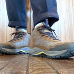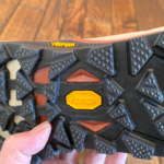 アウトソールには、Vibramメガグリップソールを採用。さらに中央付近にはねじれを抑えるプレートを内蔵し、歩行時の安定性を高めています。