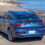 X4は「X3」とメカニズムを共用するBMWのクーペSUVで、日本車でいえばトヨタ「ハリアー」より少し大きく、ルーフ後半からリアウインドウにかけて大きく寝かされたクーペフォルムが特徴。SUVでありながら、なんともスポーティで軽快な雰囲気だ。
