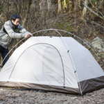 「ツーリングテント ST-II」(4万6200円)はogawaとのコラボで開発されただけに信頼性は折り紙付き。前室付きの構造ですが、直感的に張ることができました。