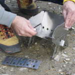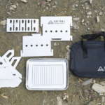 プレートを組み合わせる構造なので、こちらも組み立ては簡単。収納サイズは180×235×25mmとかなり薄くコンパクトになるので、ツーリングバッグの隅に押し込んでおくように持って行くことができました。