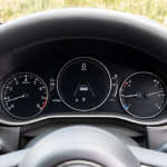 裏を返せば、エンジンのもたつきがない。AT仕様にはドライブモード切り換えスイッチが付いており、これを「SPORT」モードにすると高めのエンジン回転数を維持するようになる。例えば、高速道路のジャンクションにあるような、高速の上りコーナーでジワッとアクセルペダルを踏み込んでいくと、3000回転手前付近から一層の快音を響かせ、同時にグッと背中を押すような、隠し持っていた底力が感じられるようになる。そんなeスカイアクティブXの“美味しいところ”を探りながらのドライブはとても楽しい。