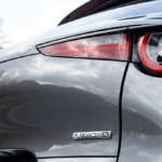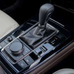 従来、CX-30のスカイアクティブX搭載モデルは、高輝度ダーク塗装のアルミホイールと大径のマフラーカッターくらいしか他のエンジン搭載車との識別点がなかった。しかし今回の商品改良で、eスカイアクティブX車専用のエンブレムがフロントフェンダーに追加されている。「乗るたびに所有感を感じてもらいたい」との判断からだというが、これは賛否両論ありそうだ。個人的に、マツダ車のエクステリアデザインは、余計なものをそぎ落としていく引き算の美学の上に成り立つものだと感じているため、少々複雑な思いだ。