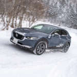今回はそんなCX-30の最新モデルで、雪道を目指してロングドライブへと出掛けた。試乗車は、従来の“スカイアクティブX”に対してパワー&トルク、そしてレスポンスが向上した“eスカイアクティブX”を搭載する4WD仕様だ。