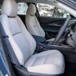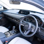 車内に乗り込んでまず感じたのは、クロスオーバーカーらしい低いドライビングポジションだな、ということ。SUVの中には“らしさ”を演出すべく、地面に対してだけでなく、フロアに対しても着座位置を高く設定した車種が少なくない。しかしCX-30は、SUVであることをさほど意識させないドライビングポジションを採用している。もちろん、セダンなどに比べるとドライバーの視点は高いが、運転席に座った際のドライバーと床との位置関係やドラポジは、ハッチバックのそれに近い。高い着座姿勢は好きじゃないというドライバーにとって、このパッケージングは魅力的に映ることだろう。