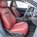 加えて、室内をのぞき込めば、渋いレッドのレザーシートが嫌でも目に入る。ベースモデルとなったプロアクティブは、黒い布シートが標準。上級グレードの「Lパッケージ」はナッパレザー製のシート表皮が標準だが、そのカラーはピュアホワイト、もしくはオリエンタルブラウンからの選択となる。