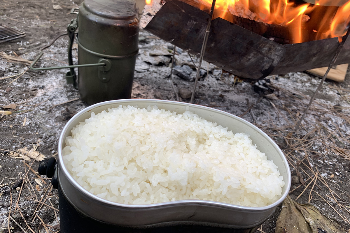 キャンプの醍醐味!焚き火で飯ごう炊飯して旨い白飯を食べる の写真・画像 5/9