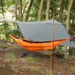 タープは1張りで済むし、ハンモック向きの木をもう1組探す手間がなく、設営のスピードアップにも役立ちそう。