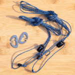 「フューズ タンデム ハンモック システム」は両側にカラビナが付いていて、これを各ハンモックの端っこに取り付けるとずれることなく距離をとるという至極シンプルなシステム。ちなみに、木への取り付けに使用しているのは、輪っかの位置によって調節しやすいENO「アトラス サスペンション システム」(3520円)です。