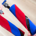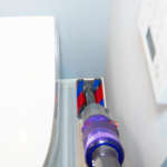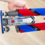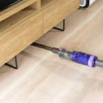 しかし「Dyson Omni-glide」はフラットなヘッドと180°倒せる本体設計で、このような面倒な場面も難なく掃除可能。倒した際の操作性もしっかり考えられており、持ち手が楕円の棒状で湾曲していないためどんな角度で持っていても手首に負担を感じることがなく態勢も無理を強いられません。