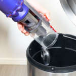 ゴミ捨ては従来通り衛生的かつ簡単なワンタッチ式。ダストカップに付いている赤いボタンを押してスライドさせれば、スクレイパーと呼ばれる部位がゴミを掻き出してくれます。1回で落ちきらなくとも2〜3回上下させると綺麗に落ちます。直接ゴミに触れずに済むのは衛生的にも気分的にも良いですね。