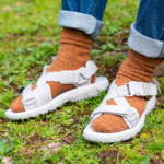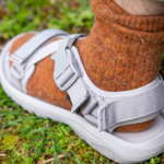 最初にスポサンを履いた時はその履き心地に衝撃を受けて即購入。ただ、履いていくうちに面ファスナーをいちいち外すのが面倒に。特にテントの出入りが多いキャンプでは、その部分がネックだったりします。だからこそ、着脱のしやすいバックルにアップデートされているのは大きなポイントです。