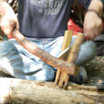 次に、木の表面を平にするためのチョッピングですが、どちらも素晴らしかったのですが、強いていえば、テラバ・スクラマに分がありました。理由は、刃の長さがトラッカーに比べて長く、真っ直ぐな形状のため、木に当たる部分が長く確保でき、きれいに木の表面を削ることができました。