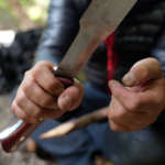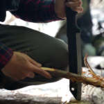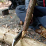 1つめは「チョッピング(叩いて先端を尖らせたり、割ったりする)、2つめは「バトニング(ナイフの背を木などで叩いて、薪を割ったりする)」、3つめが「シェイビング(木を削る)」です。この3点において、トラッカーとスクラマを試し、どちらが使いやすいかを検証しました。