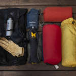 ちなみに拡張した上の写真に入れたのは、テントと夏シュラフ、マット、チェア、シングルバーナー、ボンベ、グローブ。アイテムをちゃんとソロ用にして、ユーティリティストラップを付ければマットやテントは外にくくれるので、ソロキャンプ道具一式を持っていけるかもしれません。