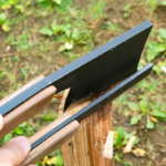 ナタとの最大の違いは、この厚さ。ナタが5mmなのに対して、斧は9mm。いかにも斧らしい分厚さです。