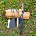 全長は約280cmで重さが約940g(本体のみ)。刃渡りは約115mm。素材は「多喜火鉈」と同じ鋼。斧としては珍しく持ち手部分までが一体となっているフルタング仕様という点も同じです。持ち手のウォルナットがしっくりきてますね。