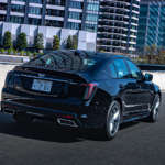 今回フォーカスするのは、現時点でキャデラック唯一の日本市場向けセダンとなるCT5だ。その実車を目の当たりにして、意外にカジュアルな雰囲気なのに驚いた。スーツでバリっと着飾った…というよりも、ジーンズにジャケットを羽織ったくらいのラフな印象。そう見える理由のひとつは、リアウインドウを大きく寝かせ、トランクリッドを短くしたクーペ風のスタイルだろう。