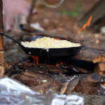 長い枝を使えば焚き火台仕様のフライパンスタンドもできるので、ぜひ、一度お試しください!