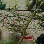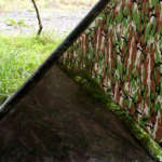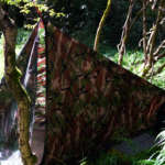 持ってきた左辺の真ん中のループと立木とをロープで結べば、あっという間に居住空間の出来上がりです。