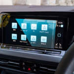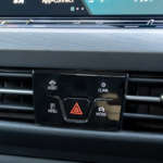 中でも驚いたのは、これまであって当然だったエアコン関係のスイッチがごっそり見当たらないこと。何を隠そう新型ゴルフは、エアコン関係のメイン操作をセンターディスプレイで行うようにしたのだ。ただしよく見ると、センターディスプレイの下にタッチ式スイッチが組み込まれていて、ここを指でスライドさせるなどで、タッチパネルで操作せずともエアコンの温度設定を変更できるようにしている。