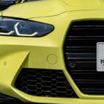 BMWのフロントマスクといえば“キドニー(腎臓)グリル”と呼ばれるふたつの穴が特徴。最新のBMWはその穴が巨大化し、ついにフロントバンパー下部まで広がっている。新しいM4も、薄暗いところでヘッドライトだけが点灯すると、口を開いた怪物にギロッとにらまれたかのようで、思わず後ずさりしそうになるほどだ。