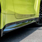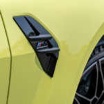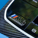 ボディサイドでは、フェンダーの張り出しが大きくなっているのが目を惹く。フロントフェンダー後方に付く“M4”のエンブレムがアクセントとなり、ふんだんに使われたカーボン製パーツとともにフツーじゃない“オーラ”を醸し出す。