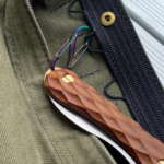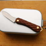ちなみに、いつも販売されているとは限りませんが、「折畳式料理ナイフ」にはスタンダードな安来鋼銀紙三号を挟んだステンレスとは異なる、安来鋼青紙二号を芯としたステンレスブレードがオプションで用意されています。プロの料理人が選ぶ切れ味のよい青紙(カーボン)を使用したブレードに交換できるのは料理好きキャンパーにとって大きな魅力です。