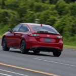 シビックは“Cセグメント”と呼ばれるクラスに属していて、日本車でいえばトヨタ「カローラ」や「マツダ3」、スバル「インプレッサ」などがライバルとなる。輸入車ならプジョー「308」やルノー「メガーヌ」、そして同セグメントのパイオニアでありトップセラーでもあるフォルクスワーゲン「ゴルフ」などと競合する。そんな中で新型シビックは、全長4550mm、全幅1800mmという、ライバルより大きめのボディサイズ設定となっている。