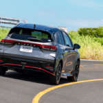 リアバンパーの中央に位置するリアフォグランプのデザインは、日産自動車が参戦中であるフォーミュラEのマシンにインスパイアされたもの。点灯時には赤いドットパターンが浮かび上がるため、悪天候時にこのクルマを見分けるアイコンとなりそうです。