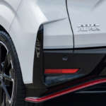 NISMOのアイデンティティを示す赤のアクセントやロゴは、新型から新世代のものへと置き換えられました。赤のアクセントの色調はやや明るいものへと変更。また、ロゴはブラックに塗られたエアロパーツ部に配置されるようになったほか、左右の位置がセンターに改められたことで、ボディカラーに関わらずNISMO仕様であることがひと目で分かるようになりました。