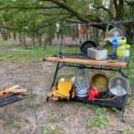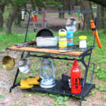 ソロキャンプでは「リトルワークスタンド」がメインテーブル+ラックの役割を果たしてくれるのでこれ1台で事足ります。ファミリーキャンプの場合、大鍋で大量に料理を作るにはやや無理がありますが、親子2〜3人でシングルバーナーを使っているのであればキッチンテーブルとして十分機能します。ぜいたくに大人のコーヒー専用テーブルとするのも楽しそう。