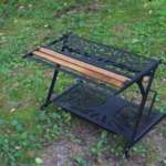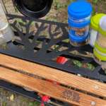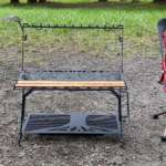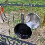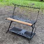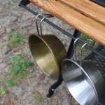 焚き火のそばに「リトルワークスタンド」を置いても大丈夫ですが、完全な耐熱塗料ではないので火からおろした熱々のケトルや鍋を直接アイアン部分に載せるのはやめたほうがいいそうです。