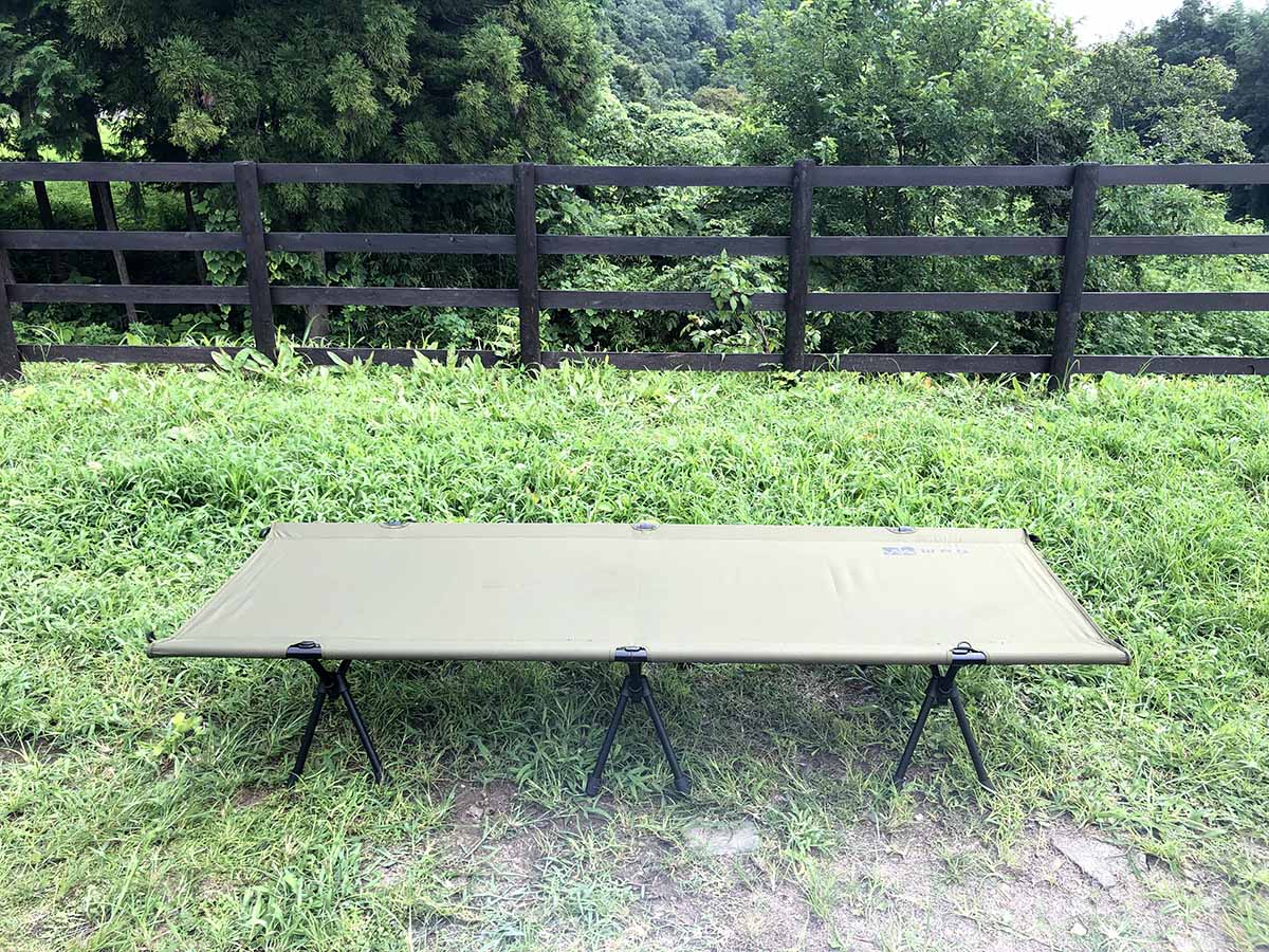愛用しているコールマンのUSAコットは、頑丈でミリタリー感もあって気に入っていたんですが、持ち運びと組み立てだけでそこそこ体力を削ってくるヤンチャ坊主でもあります。軽くてかさばらないコットがいいのよ…、しかもお財布にやさしいやつ…とネットを漁っていたら、ちょうどよさそうなアイテムを発見。