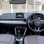 今回の試乗車は、新色であるプラチナクォーツメタリック(「15C」、「XD」、「15MB」以外のグレードで選択可能)をまとったサンリット・シトラスだった。スポーティなイメージを求めるならポリメタルグレーメタリックのような濃色系が似合うだろうが、カジュアルに、そしてフォーマルに使いこなすなら、金属質な光の反射が上質なムードを放つ淡色系のメタリックがいい…。そんな印象を、プラチナクォーツメタリックのマツダ2を見ながら抱いた。