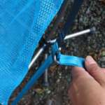 シートの四隅は樹脂製のソケットが付いていて、フレーム端のボールを差し込みます。途中でシートがはずれることがなく素早く組み立てられるのがいいんです。